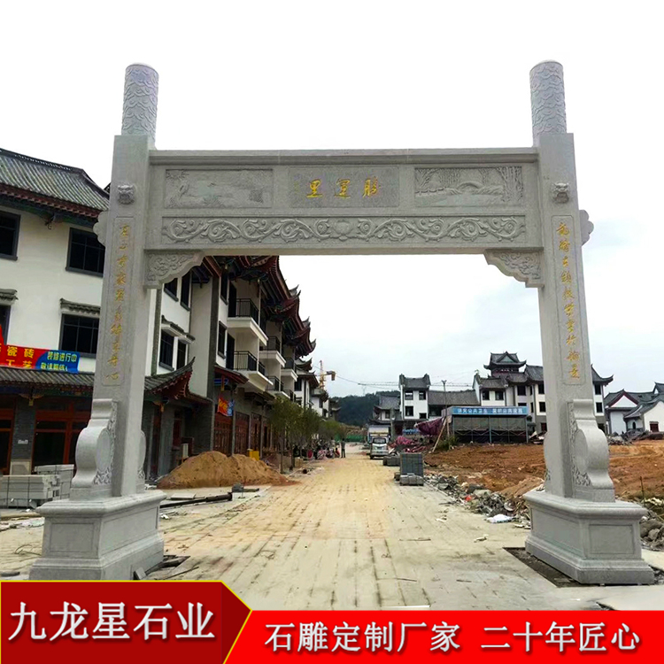 關(guān)于更多的石雕牌坊設(shè)計(jì)尺寸及村口石雕牌樓多少錢、制作樣式圖片請(qǐng)致電我們或者在線留言,九龍星石業(yè)從事石牌樓制作多年,專業(yè)的石牌樓設(shè)計(jì),高超的石雕牌坊雕刻手法,為眾多的客戶設(shè)計(jì)雕刻了各式各樣的石雕牌坊,以較優(yōu)惠的價(jià)格及精湛的雕刻工藝,供廣大用戶考察定購(gòu)。