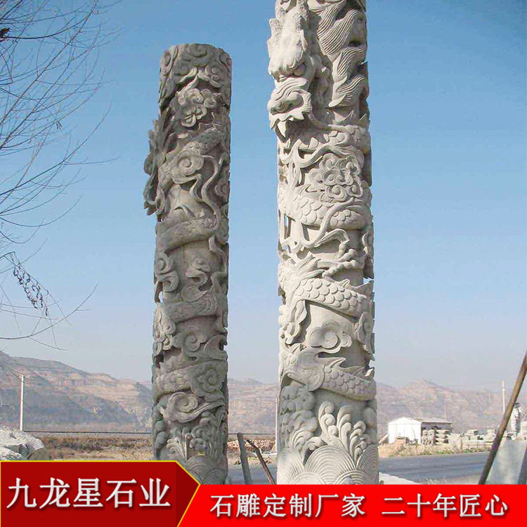 盤(pán)龍柱這個(gè)名字的由來(lái)并不是空穴來(lái)風(fēng),而是與上面所繪制的圖案有關(guān),也就是說(shuō),在每一根盤(pán)龍柱上都雕刻了龍的圖案,而這些龍的形態(tài)各不相同。石頭做的龍柱子廠家常見(jiàn)的多為龍?zhí)ぶ樵瞥尸F(xiàn)出遨游于天際的氣勢(shì)。這些龍柱的材質(zhì)都是由漢白玉、大理石、花崗巖制成,并調(diào)用了雕刻手藝非常***的藝人花費(fèi)大量的時(shí)間精心雕刻而成。當(dāng)我們?cè)谛蕾p精美的浮雕龍柱作品時(shí),應(yīng)該要知道浮雕龍柱的雕刻工藝是非常的***而又繁瑣的。盤(pán)龍柱多少錢(qián)一個(gè)?