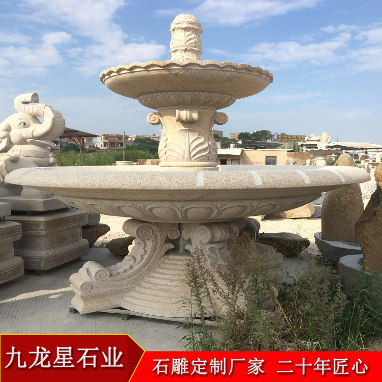 石雕噴泉廠家的雕刻造型千姿百態(tài)很多樣化,有動(dòng)物石雕噴泉、人物石雕噴泉,有圓形、半圓形、方形、多邊形等,立面可以分單層、多層等。噴泉石雕的設(shè)計(jì)依據(jù)是要配合應(yīng)用地點(diǎn)的環(huán)境特點(diǎn)。