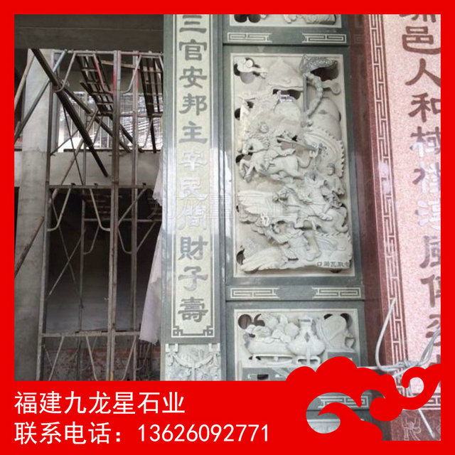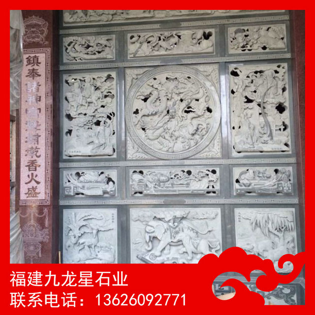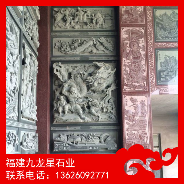 寺廟浮雕(祠堂浮雕 宗祠浮雕)——每一座寺廟成立之初都是抱著屹立千年不倒之決心的,所以用石材制作各種寺院室內(nèi)外的東西已成為一種大趨勢(shì)。青石制作出來(lái)的浮雕無(wú)論是使用在室內(nèi)還是室外,即使放了千年,染上了青苔,兩種顏色相近,這也只會(huì)增添浮雕的韻味,而不是讓人感覺(jué)到很臟。而且青石比較素雅,與佛教的清靜無(wú)為非常相稱。