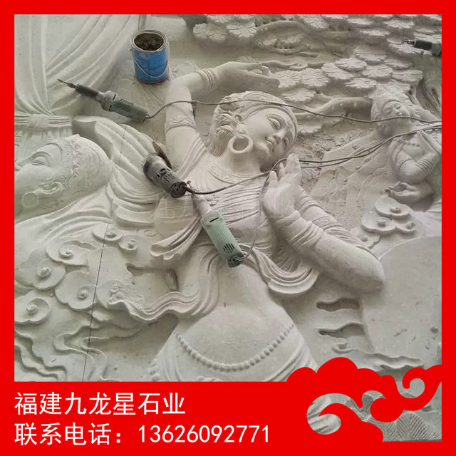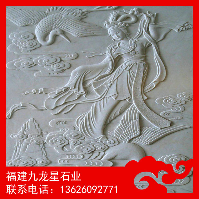 仙女浮雕是石材浮雕的一種,把仙女圖案生動(dòng)形象的雕刻在石材上。淺浮雕是所雕刻的圖案和花紋淺淺地凸出底面的一種裝飾技法。這種技法流行于清代晚期,在刻字等方面最為常見(jiàn),其中陽(yáng)文和留青屬于淺浮雕。