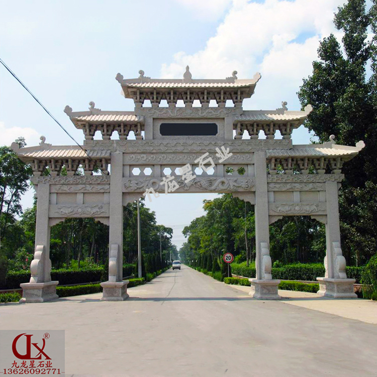 公園中式石雕門(mén)牌坊安裝好后,可聳峙百年而不倒,供后人瞻仰、觀賞,給后人留下寶貴精神財(cái)富。別的,公園大門(mén)牌坊圖片制造工藝精深,還具有極高的藝術(shù)觀賞價(jià)值,跟著時(shí)間的消逝,石牌坊的仿古價(jià)值表現(xiàn)的越來(lái)越高,其精細(xì)的做工及漂亮的表面,使其價(jià)值飛漲。
