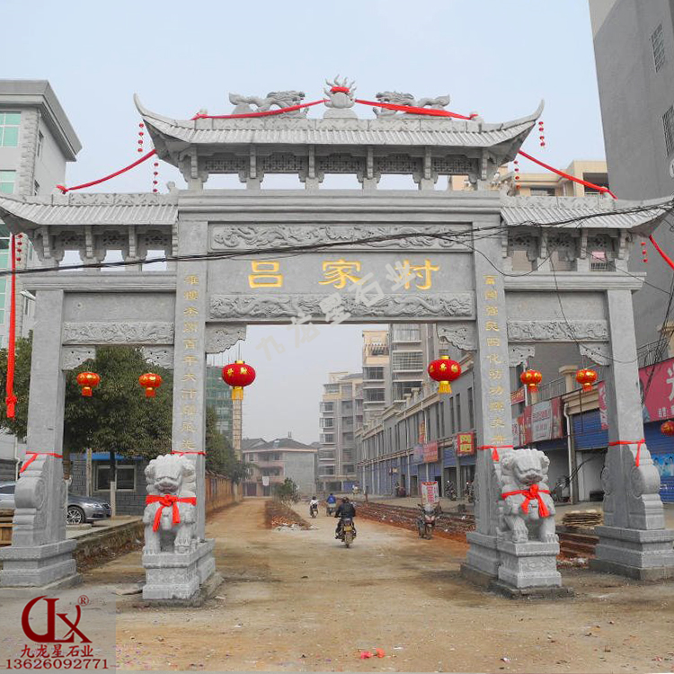 門樓牌坊多少錢一個(gè) 鄉(xiāng)村簡易門樓牌坊價(jià)格——九龍星石業(yè),二十年雕刻工藝。