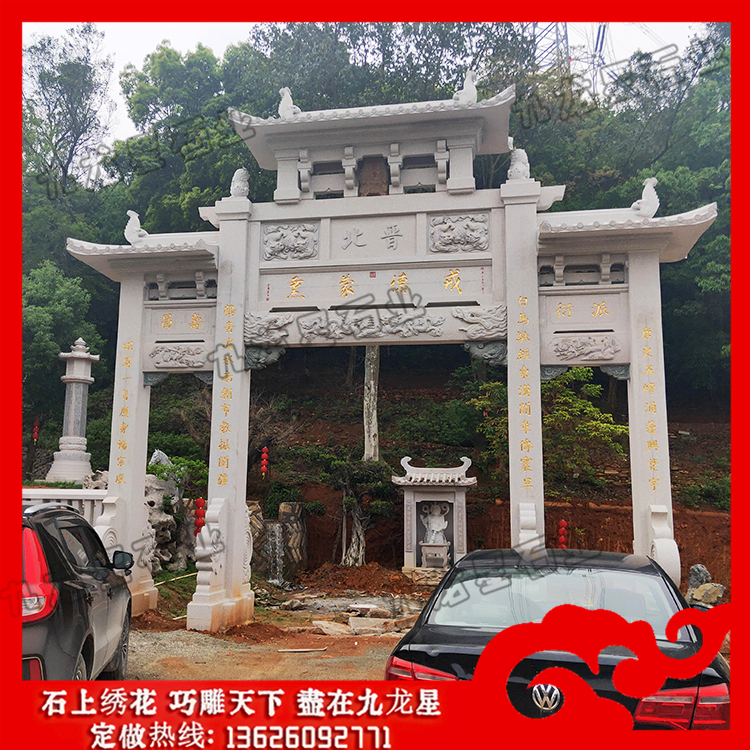 石雕石牌坊(寺廟山門樣式 山門牌坊石雕圖片大全)——九龍星石業(yè)。