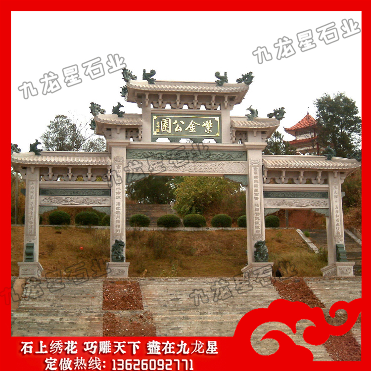 石牌坊(公園入口牌坊造價 花崗巖石雕牌坊加工)——九龍星石業(yè)。