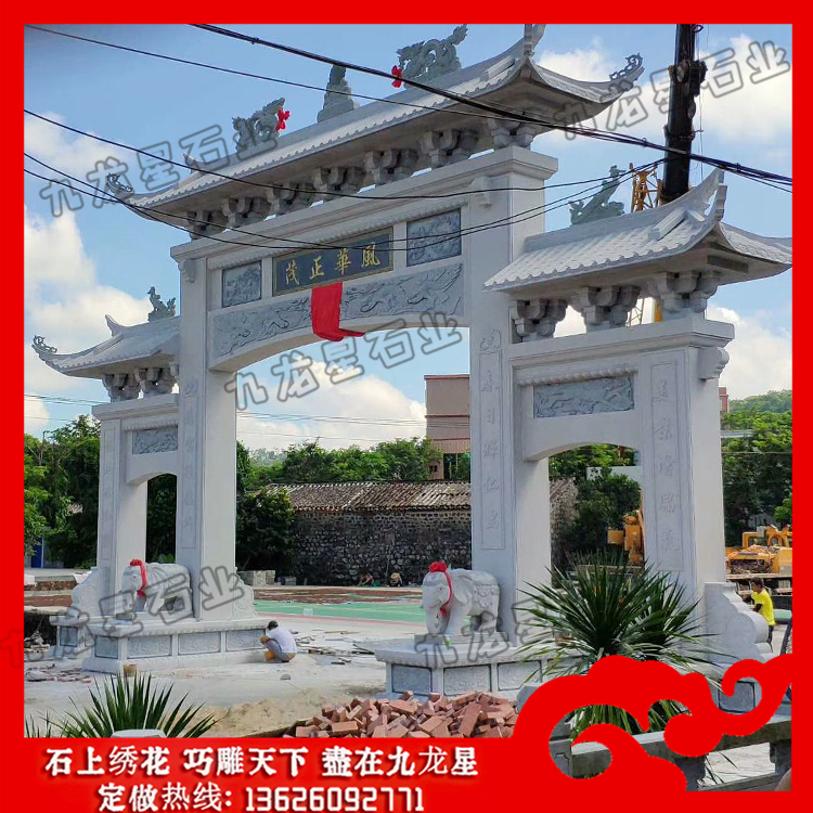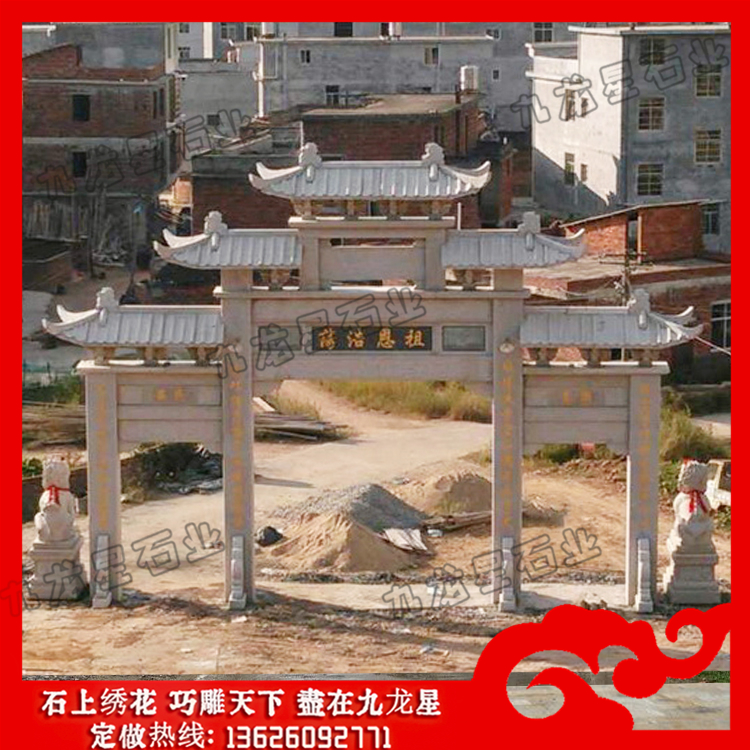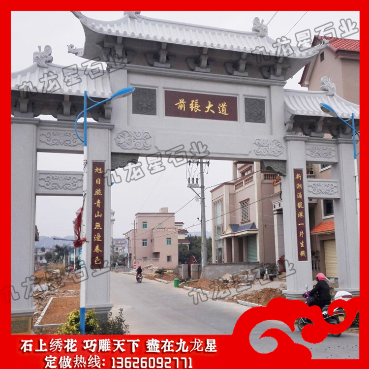 石雕牌坊(農(nóng)村大門石牌坊 石雕村牌坊圖片大全)——九龍星石業(yè)。