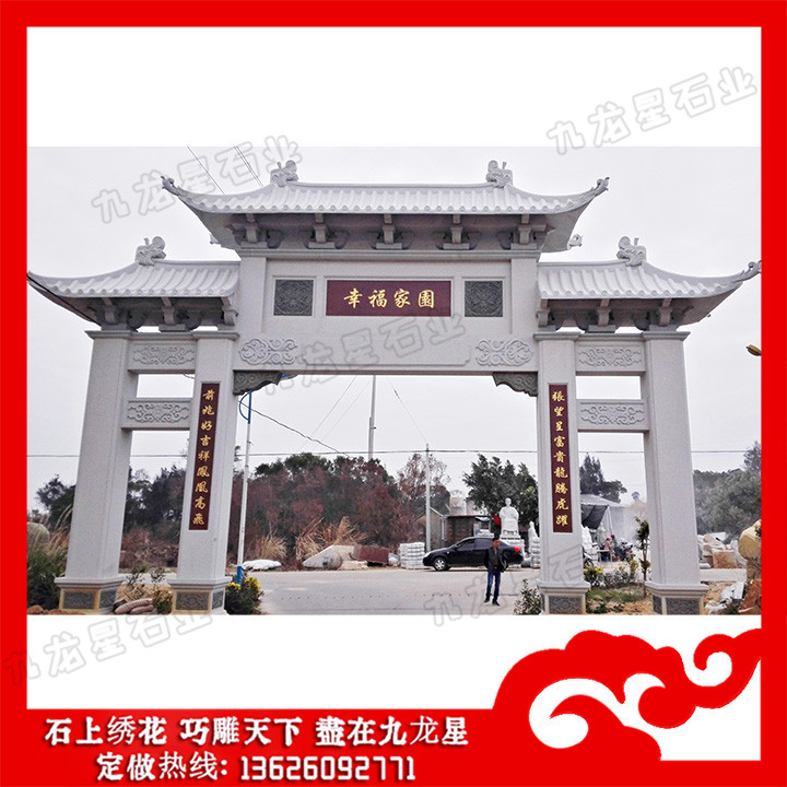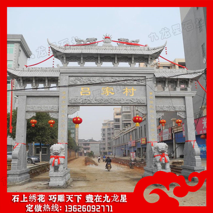 石雕牌坊(石牌坊生產(chǎn)廠家 一座美麗的農(nóng)村石牌坊)——九龍星石業(yè)。