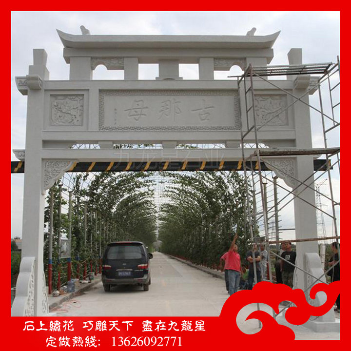 石牌坊的種類很多,單門牌坊也是較常見的類別之一。常見的單門牌坊一般于步行街、村莊、景區(qū)入口較多。石牌坊這種古老建筑在設(shè)計形式上多種多樣,它雖然古老但是設(shè)計形式并不單調(diào),相反這種建筑設(shè)計還為現(xiàn)代設(shè)計提供了很多有益的借鑒。單門石牌坊作為牌坊的一個種類,在很多地方我們都可以見到它的身影,這種建筑相對來說比較簡單,但是可以起到很好的裝飾性作用。