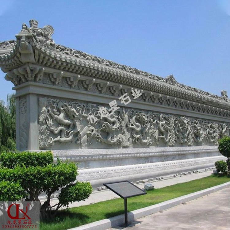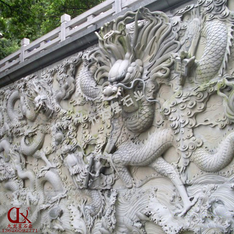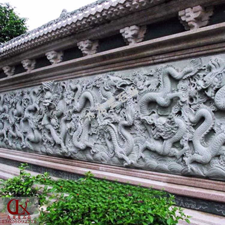 九龍照壁墻雕刻造型本身就有很好的吉祥寓意,再和現(xiàn)代設立理念相結合,能夠成為不錯的設計體裁。龍的圖畫充滿著吉祥如意,所以許多裝飾物都樂意挑選龍的造型。無論龍的數(shù)量有多少,他們能夠從這里借鑒一些內(nèi)容,并且和現(xiàn)代建筑裝飾理念相結合,會有新的思想上的火花,對于現(xiàn)代建筑來說有很大的含義。