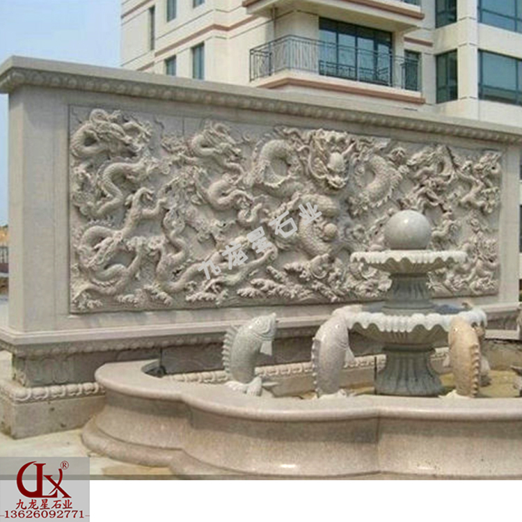 九龍照壁墻雕刻 石雕九龍浮雕圖案——九龍星石業(yè),可定做。