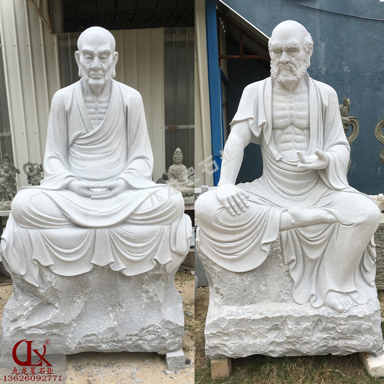 用于室外擺放的石雕十八羅漢坐像圖片通常建議用花崗巖石材雕刻,按順序擺放在兩側(cè)。漢傳佛教的的石雕十八羅漢隨著雕塑文化的發(fā)展,造型有立像、坐像、坐立結(jié)合的三種雕刻方式。
