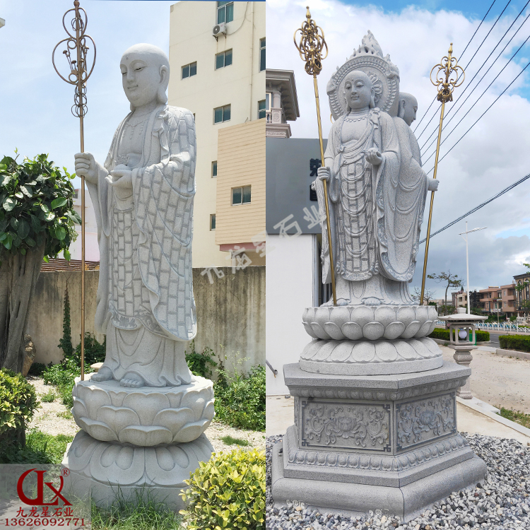 地藏王菩薩石雕像,不能說(shuō)誰(shuí)都知道,但有句話想必大家應(yīng)該都聽(tīng)過(guò)“地獄不空,誓不成佛”。這句話說(shuō)的就是“大愿地藏王菩薩”其實(shí)這句話的來(lái)源是淵源可以追溯的,其淵源就是地藏王菩薩的前世。石雕地藏菩薩(梵文: Kitigarbha),或稱(chēng)地藏王菩薩,曾音譯為“乞叉底蘗沙”。因其“安忍不動(dòng)如大地,靜慮深密如秘藏”,故名地藏。為佛教四大菩薩之一,與觀音、文殊、普賢一起,深受世人敬仰。以其“久遠(yuǎn)劫來(lái)屢發(fā)弘愿”,故被尊稱(chēng)為大愿地藏王菩薩。