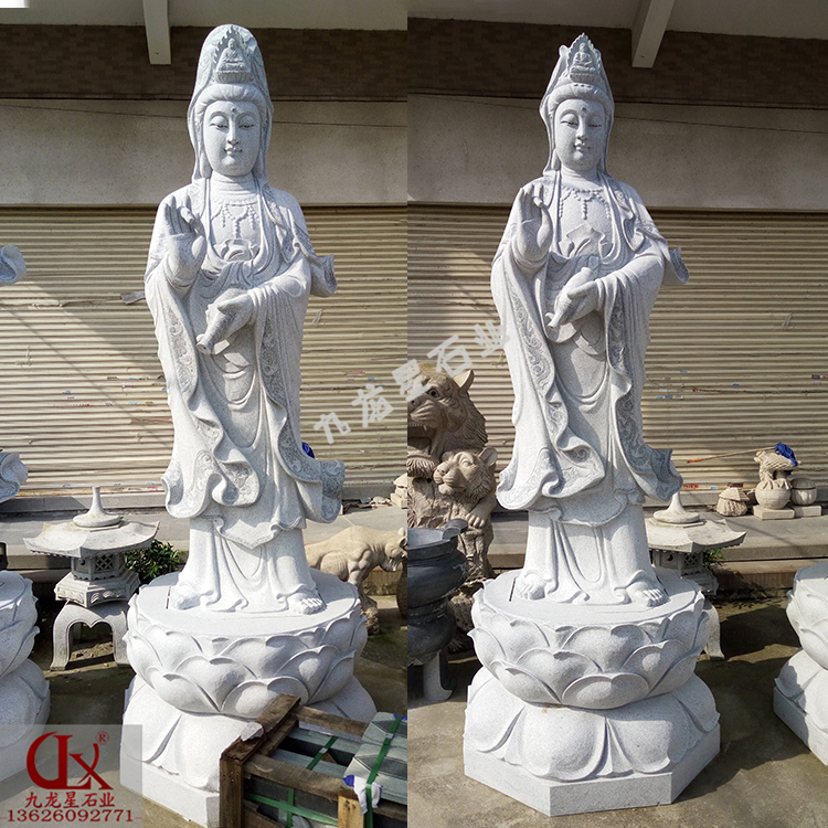 石雕觀音(寺廟觀音菩薩石像 露天石像雕刻觀音價格)——九龍星石業(yè)。