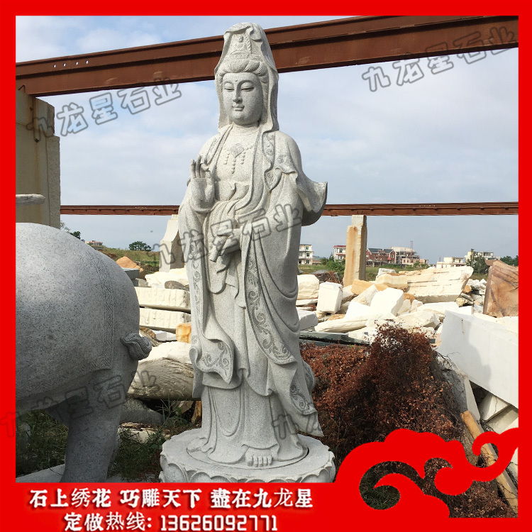 石雕觀音雕像雕刻 觀音石雕大型佛像擺件