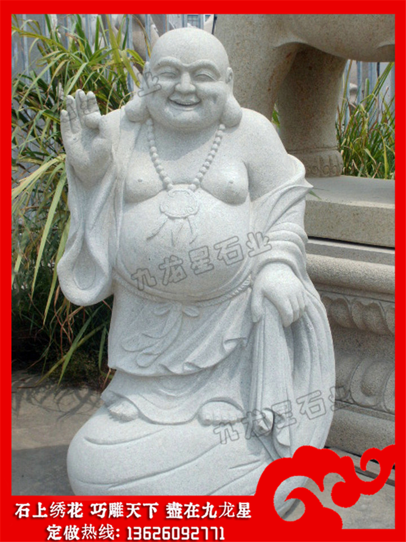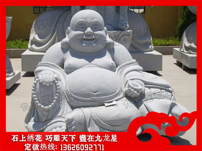 彌勒佛石像(笑口常開彌勒佛石雕 石雕彌勒佛菩薩圖片大全)——九龍星石業(yè)。 早期的石雕彌勒佛菩薩圖片大全造像,分為“彌勒菩薩像”和“彌勒佛像”。以“菩薩”身份出現(xiàn)的彌勒造像大多為菩薩裝,頭戴寶冠,有些身披瓔珞等配飾,身材修長挺拔。以“佛”身份出現(xiàn)的笑口常開彌勒佛石雕造像,多具有背光、佛座,身穿僧祗衣,雙手作轉(zhuǎn)法輪印。佛教傳入中國后王朝的興衰變遷讓中國百姓熱切地盼望著彌勒佛的降生,于是塑造了數(shù)量眾多的以“佛”之身份出現(xiàn)的彌勒造像。