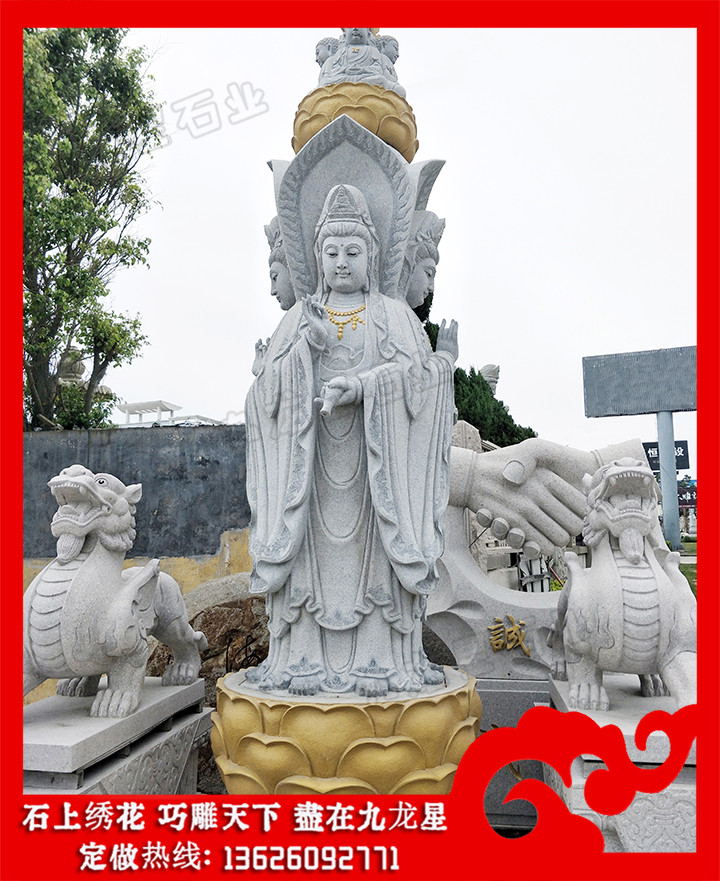 觀音石雕像(石雕四面觀音圖片大全 四面觀音石像定制)——九龍星石業(yè),惠安知名石雕佛像廠家。