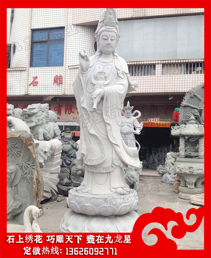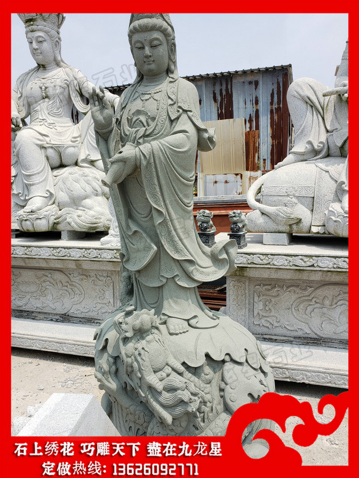 石雕佛像(石頭雕刻觀音菩薩像 惠安石雕觀音像廠家)——九龍星石業(yè)。 石頭雕刻觀音菩薩像的加工,首先要先確定石雕觀音像造型,畢竟現在石頭雕刻觀音菩薩像的設計多樣,風格也都各有不同,在設計上都需要先確定基本的造型。石雕觀音像分類多,惠安石雕觀音像廠家設計也都各有不同,其中包括了過海觀音、楊柳觀音、白衣觀音、千手觀音等等,雕刻設計樣式不同,在雕刻上也都會有不同要求。需要先有一個整體的設計,確定觀音石雕像樣式等,確保雕刻的順利進行,塑造精致觀音作品。