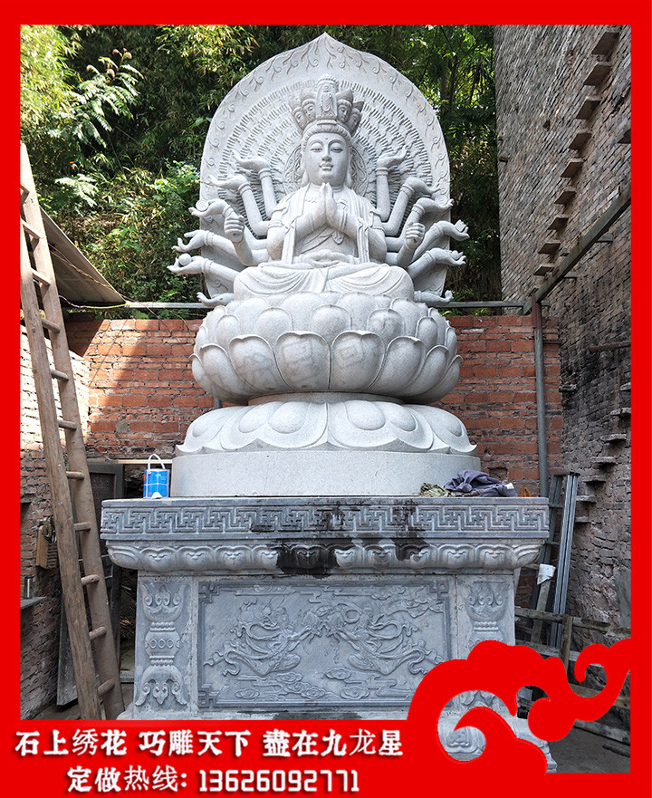 石雕滴水觀音不僅可以像石頭一樣外觀外觀色澤、形狀千百年不變,而且還可以根據(jù)人們的需求,雕刻成各式各樣的造型。在現(xiàn)代石材市場中,一般將石材根據(jù)其形成的方式不同區(qū)分為花崗巖、大理石、砂巖等。在石頭雕刻觀音像的所用石材中,這三種石材都是可以作為雕塑用材的,但是常用的石材并沒有很多。以福建石雕觀世音廠家為例,目前這里制作滴水觀音的主要石材為部分花崗巖石材和漢白玉大理石。這些所說的花崗巖石材有芝麻白花崗巖、芝麻灰花崗巖、青石、桃花紅、泉州白。采用這種石材制作出的滴水觀音外表顆粒細(xì)膩,身體紋路清晰自然,遠(yuǎn)處觀看又像是白色雕像,整體制作出來的石雕滴水觀音十分干凈、整潔。