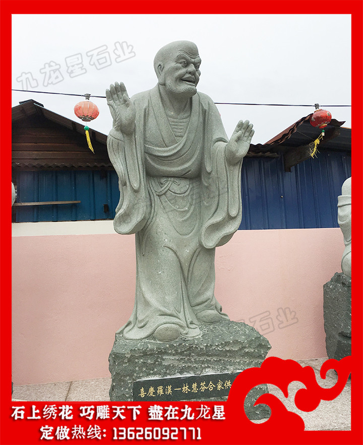 一整套的十八羅漢石雕圖片是九龍星石業(yè)的案例圖片,材質(zhì)為青石。十八羅漢石雕圖片的雕刻建造有很多說明,其本身的由來就有很多故事。石雕十八羅漢是中國佛教的文化展示,是指駐守在民間的十八位釋迦牟尼弟子,能夠守護(hù)世間的平和。中國是從唐代開始流行石雕十六羅漢,后來到了唐朝末年,加入了兩位尊者,變成了十八羅漢石雕,是佛教寺院中的主要佛像雕刻選擇,幫助指導(dǎo)民間眾生,守護(hù)一方的祥和太平。