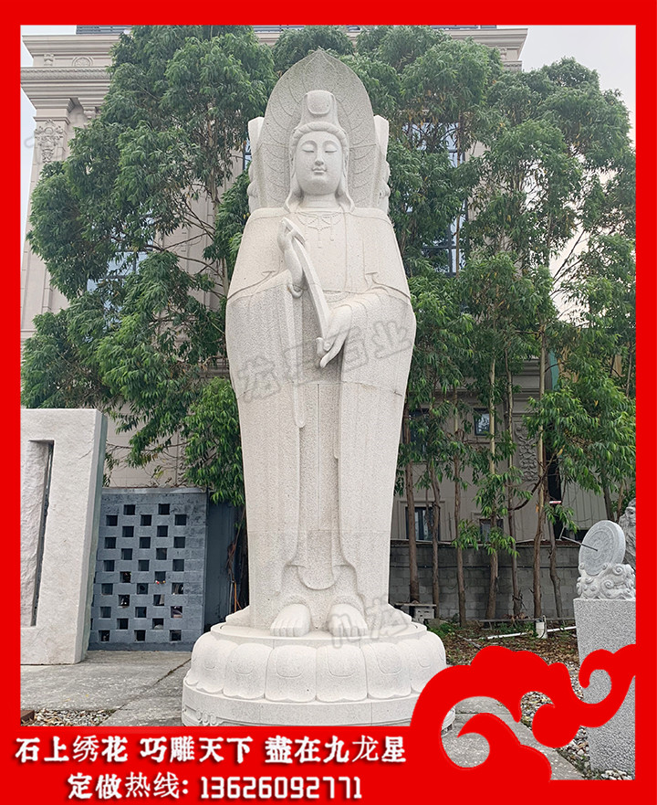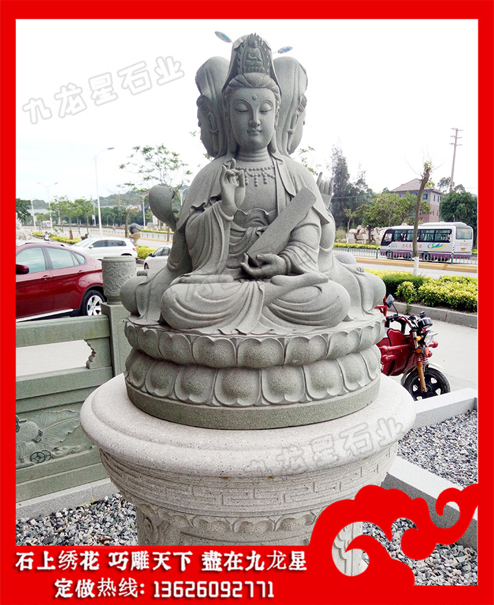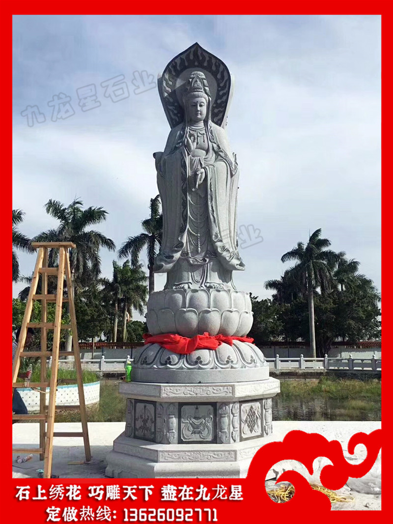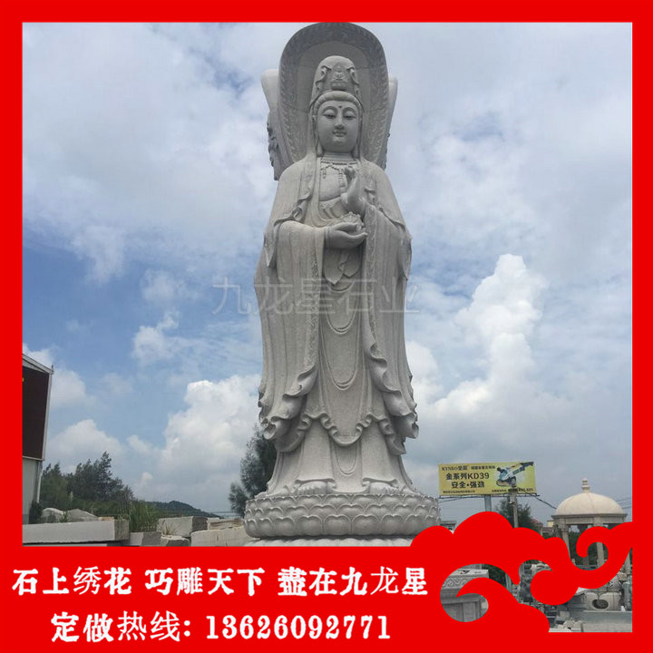 石雕觀音菩薩(石雕三面觀音圖片 站立觀音石雕圖片大全)——九龍星石業(yè),支持批發(fā)定做。