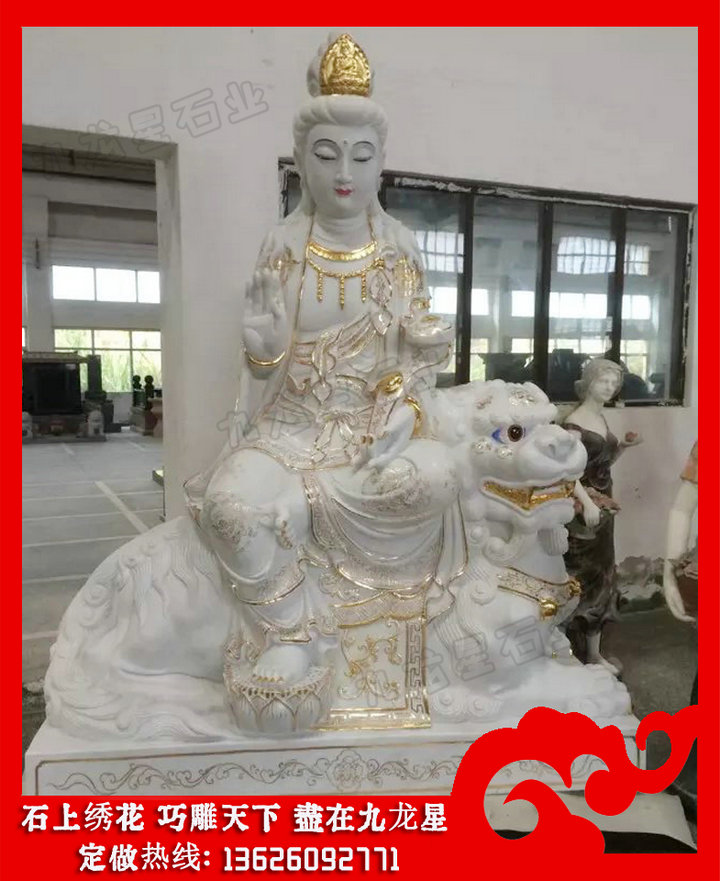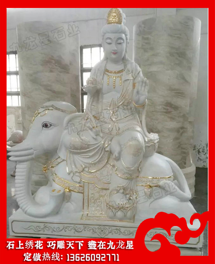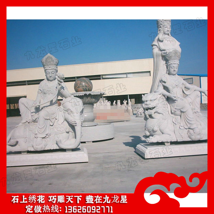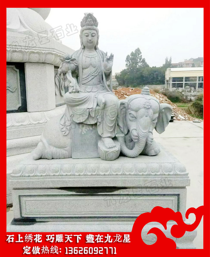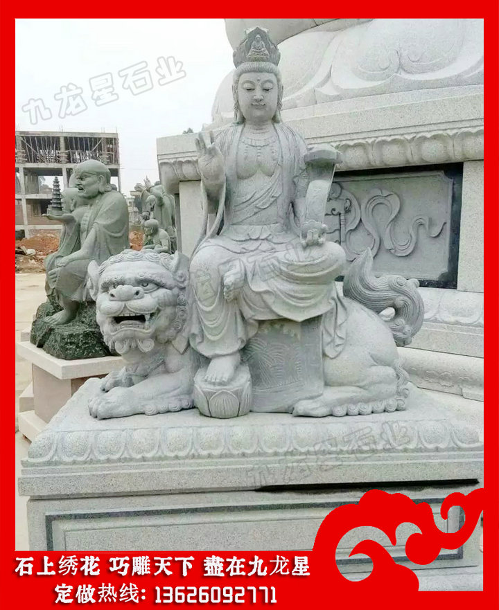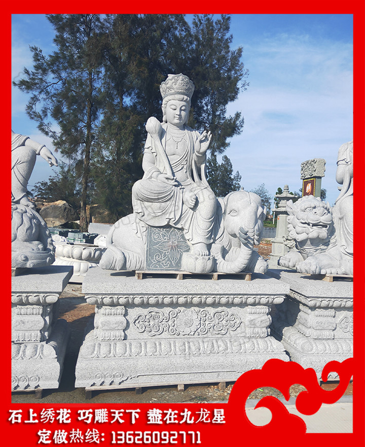 石雕文殊普賢菩薩(石雕文殊菩薩價格 普賢菩薩石雕像)——九龍星石業(yè),款式造型很多,可致電咨詢價格。 石雕文殊菩薩大多是采用天然優(yōu)質(zhì)花崗巖雕刻,石材紋理美觀,雕刻線條流暢,純手工雕刻精美絕倫。普賢菩薩石雕像造型手持七寶蓮,神態(tài)端莊的坐于六牙白象背上,普賢菩薩石雕像與觀世音菩薩,地藏王菩薩、石雕文殊菩薩價格合稱佛教四大菩薩,象征理德、行德。與釋迦牟尼佛如來、文殊菩薩又尊稱為“華嚴三圣”。石雕佛像的造型很多很多,可在線留言咨詢。