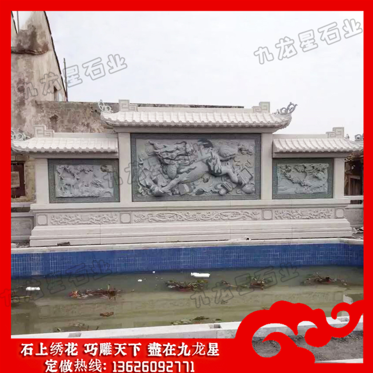石雕照壁(石材雕刻照壁 新中式大理石庭院照壁)——九龍星石業(yè)。
