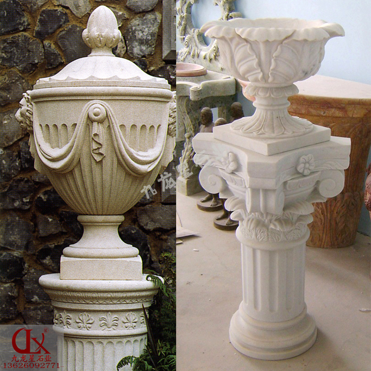 歐式石材花缽雕塑 石材花缽雕刻圖片效果——九龍星石業(yè)。