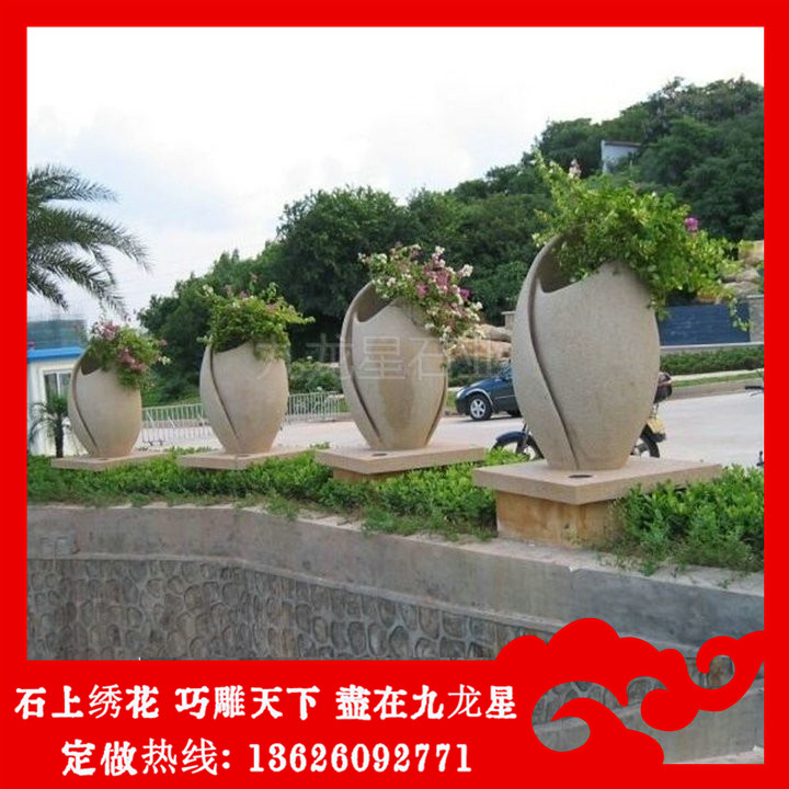 現(xiàn)在市場上常見的黃金麻石材花缽圖片大全有碗狀花缽、桶狀石材花缽、方形花缽、球型花缽、動物型花缽,甚至是各種藝術(shù)造型的花缽,石雕花缽因?yàn)殚L期擺放在室外,在初期的保養(yǎng)是非常有必要的,不然會隨著時間的推移,石材會出現(xiàn)發(fā)黃、褪色、氧化干裂等狀況,園林花缽制作時挑選會著重考慮到各種因素,一般選選取黃銹石花缽石雕這種不怕水的石材品種,也可以選擇當(dāng)?shù)厣缴系氖倪M(jìn)行加工。