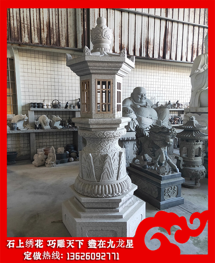石雕燈籠(圍墻石燈籠圖片大全 石雕燈籠廠家)——九龍星,廠家現(xiàn)貨批發(fā)。 圍墻石燈籠圖片大全是人們在生活中的某些場地就可以看到的。例如景觀上的那類四五十厘米的小石燈,或是中式庭院中的這些瘦高瘦高的石燈,及其古代中國院落中放置的中式石燈。園林式石雕燈籠去日本的景觀裝飾中曾獲得充足的轉(zhuǎn)型,絕不生動地說,景觀圍墻石燈籠圖片大全在景觀園林的運用是由韓國推動起來的。當代景觀石燈的造形最少有上千種,是很多韓國油畫家寫作出去的,是她們聰慧的晶體。