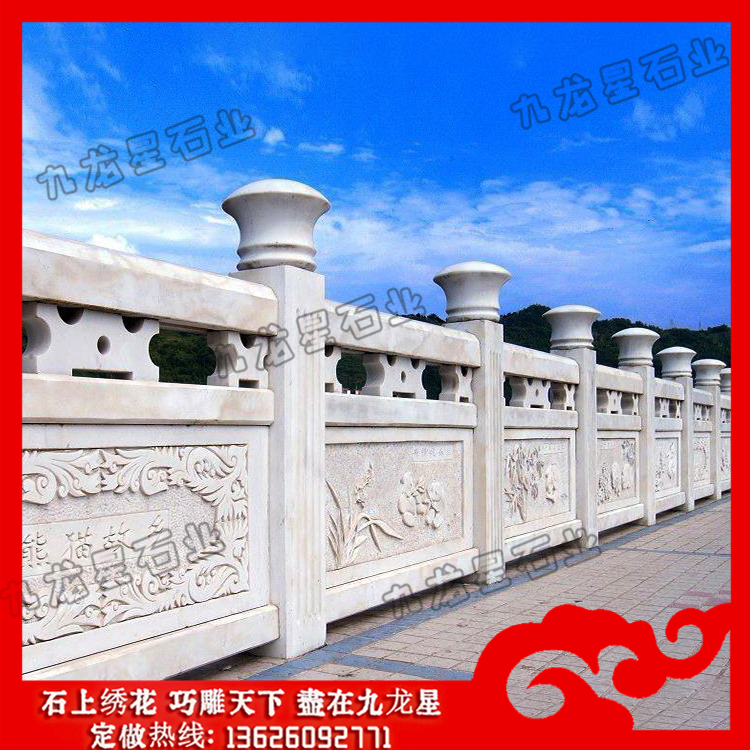橋梁石質(zhì)欄桿作為一種具有構(gòu)筑和裝飾雙重功效的天然建筑材料,一直以來備受人們青睞。人們之所以選擇石材,除了它的建筑功能外,更看好它美麗的自然裝飾效果,石雕欄桿花草圖片大全的美麗裝飾效果,不僅需要的雕刻手法,更需要認(rèn)真的保養(yǎng)和維護(hù)。