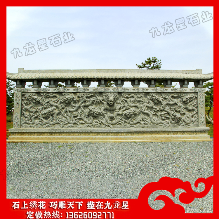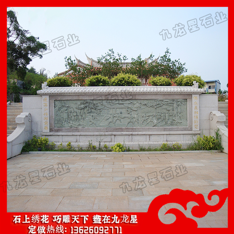 石雕照壁墻(祠堂照壁 中式石雕照壁圖案效果圖)——九龍星石業(yè)。
