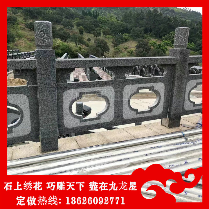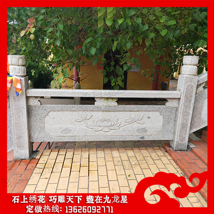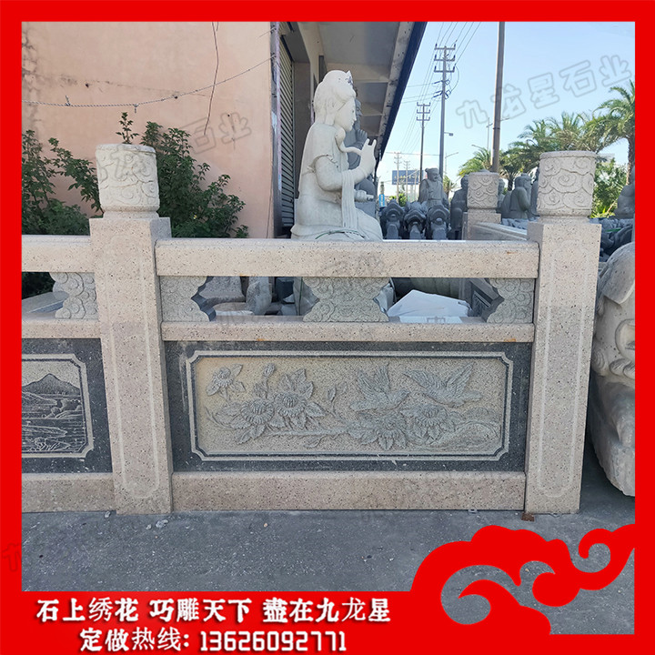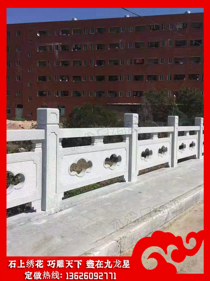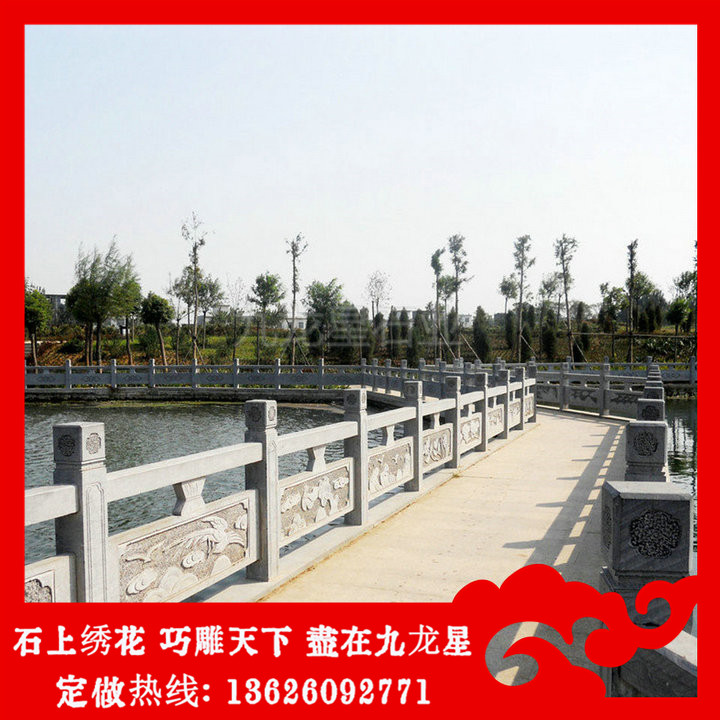 石雕欄桿效果圖應(yīng)用不同的場景高度設(shè)置不同,普通我們倡議具有平安防護(hù)功用的花崗巖石欄桿普通高度應(yīng)該大于0.9米,人們不應(yīng)過于追求外觀古樸、精致,而疏忽了平安防護(hù)作用。石雕欄桿效果圖的尺寸決定了它所消耗石材的多少。很顯然尺寸打的石欄桿所需要的石材更多,因此花崗巖石欄桿價(jià)格必然會(huì)更高。兩個(gè)相同質(zhì)量的石欄桿,表面積越大的價(jià)格越貴,高度越高的價(jià)格越貴。因此在設(shè)計(jì)石欄桿的時(shí)候既要考慮美觀度、防護(hù)性的要求,也要根據(jù)工程的預(yù)算適當(dāng)?shù)募s束一下欄桿的尺寸。更多花崗巖石欄桿價(jià)格一般多少的細(xì)節(jié)信息,歡迎直接致電咨詢。