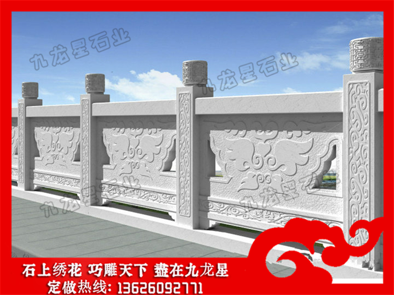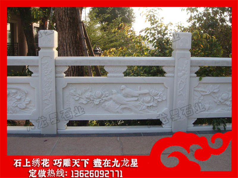 石欄桿(石材欄桿廠家哪里有 石雕欄桿花板圖片大全)——九龍星石業(yè)。 從古至今在一些園林的建筑中都有石雕欄桿花板圖片大全的身影,而石材欄桿的安裝就是其中較為常見的,不但有著經(jīng)久耐用的效果,看上去還非常的美觀大方。無論是分割空間需要,還是作為防護裝置,都可以有非常大的優(yōu)勢。石雕欄桿花板無論是安裝在道路、橋梁、亭榭樓閣兩側(cè)安裝,都會有非常不錯的表現(xiàn),都有著非常好的安裝效果。石材欄桿廠家哪里有?來惠安石雕之鄉(xiāng)九龍星石業(yè),二十多年的石雕廠家,價格實惠公道。