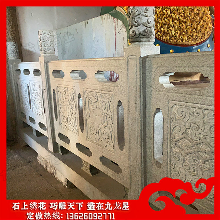 專業(yè)的石雕浮雕欄桿在設計上常常也是自成一個整體的藝術創(chuàng)作,但如果在石雕欄桿與周圍環(huán)境和建筑搭配協(xié)調之時,那么在自然環(huán)境的呈現(xiàn)才能體現(xiàn)出它的和諧環(huán)境美,例如石欄桿與橋的搭配,就能體現(xiàn)出它的整體美感了。寺廟古建的中式石欄桿護欄看起來也更加復古大氣。