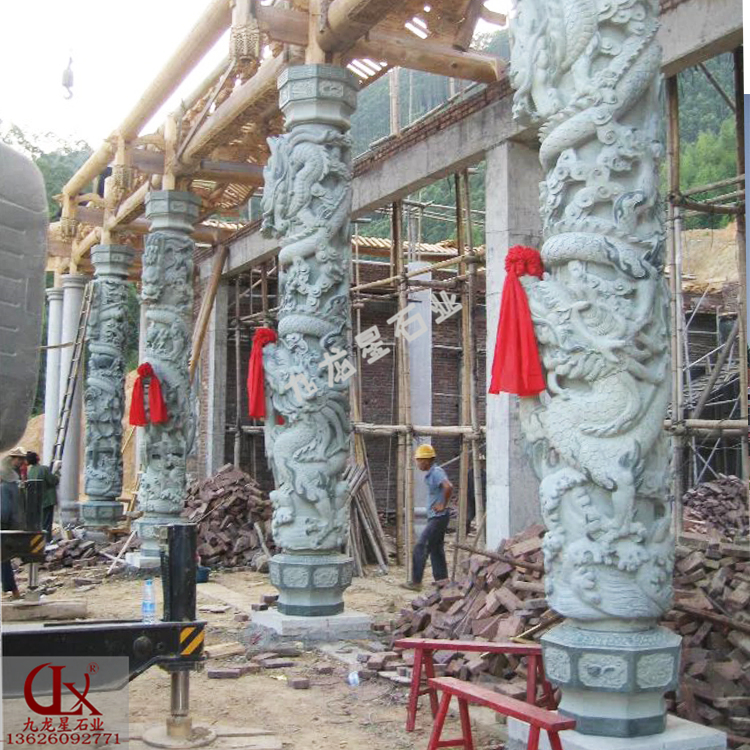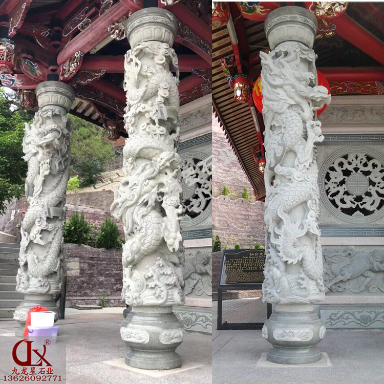城市廣場石雕文化柱 花崗巖浮雕龍柱雕琢——九龍星石業(yè)。