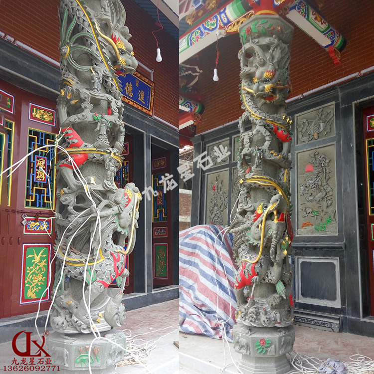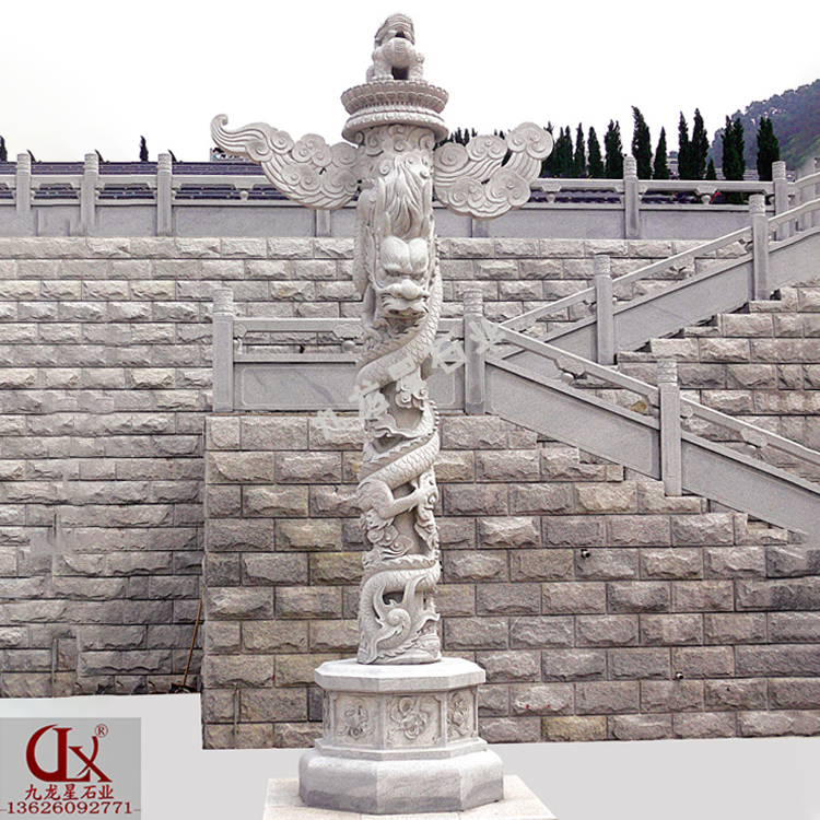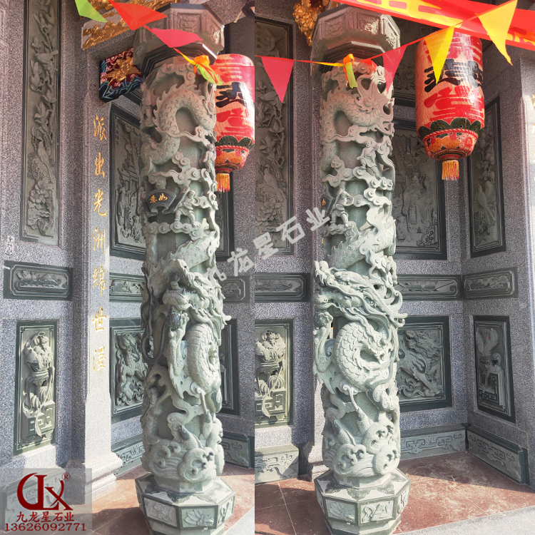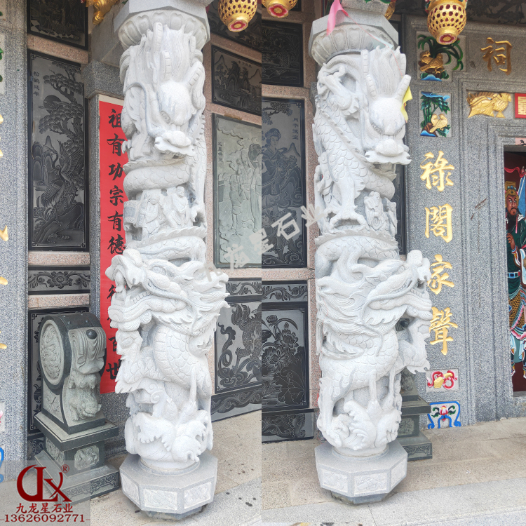 雙龍柱雕刻 廟宇花崗巖龍柱圖片大全——九龍星石業(yè)。