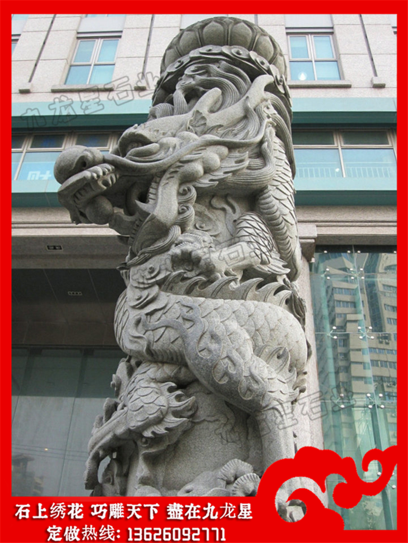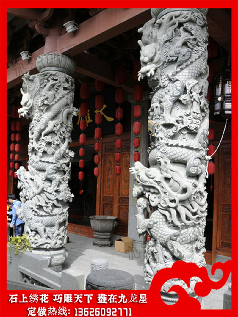 在龍柱石雕雕刻的圖片樣式中,龍鳳柱也有很高知名度,鳳凰柱透雕瑞鳳,一柱一鳳,亦隨時(shí)代推移而累加花草、百鳥、仙女等附屬飾物,故又稱“花鳥柱”。灣里萬(wàn)年殿雙鳳一上一下,斜角互視,屬典型的布局;雙龍柱圖片也有一柱二鳳,振翅揚(yáng)翼,配合眾鳥爭(zhēng)鳴、百花齊放,顯得喜氣洋洋。龍柱石雕雕刻的設(shè)計(jì)和施工方面都非常簡(jiǎn)單方便。石雕龍柱強(qiáng)度大,抗沖擊性能好:天然的石材可以制成雕刻成優(yōu)質(zhì)的石雕龍柱,它的抗壓強(qiáng)度是普通石材的3-5倍,而且平整度高,抗震性強(qiáng),防火和隔熱效果也非常不錯(cuò)。