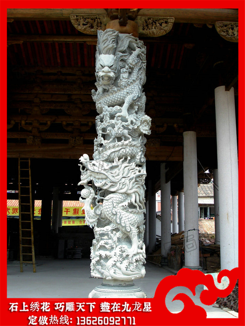 石雕龍柱(石雕大殿龍柱圖片及價格 青石石龍柱廠家)——九龍星石業(yè)。 石雕大殿龍柱的主要材質是青石,大理石,花崗巖材質,其主要雕刻以透雕,鏤空雕為主。在古代歷史中,青石石龍柱都是被用于宮殿園林中,外觀華美,象征帝王身份。也被放在園林建筑中,莊嚴肅穆的感覺。石雕大殿龍柱圖片及價格是以龍的形象來作為基礎,在石柱上進行雕刻,展現(xiàn)出龍的多姿多彩。這樣簡單的一個石柱,其實里面蘊含著很多文化不僅是對于傳統(tǒng)的傳承,還包含了對自然的敬畏。青石石龍柱廠家的雕刻藝術也是一門傳統(tǒng)的藝術形式,在古代人們就會通過手工雕刻的方式在石柱或者其他石材上雕刻龍的形象。