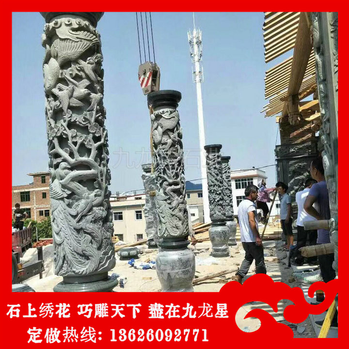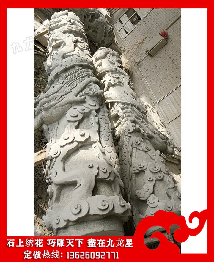 石雕龍柱(惠安石材雕刻龍柱 石雕盤龍柱價格)——九龍星石業(yè),二十年雕刻廠家。 從很多地方上看, 沿海地區(qū)幾乎逢文廟都有石雕盤龍柱, 有很多地區(qū)的龍柱則多立于廟前, 這正式清代閩南地區(qū)移民渡海謀生、墾荒臺灣的歷史相吻合。從惠安石材雕刻龍柱的造型看, 龍體多變化、嬌健、飄逸, 有一股“ 神” 氣貫穿其中。雖然部分龍的氣貫長虹的威勢,我們?nèi)匀豢梢詮凝埖能|體雕刻中感受到古時候藝匠想要極力表達的“ 龍行虎步” “ 龍虎精神” 的意義?!?/span>