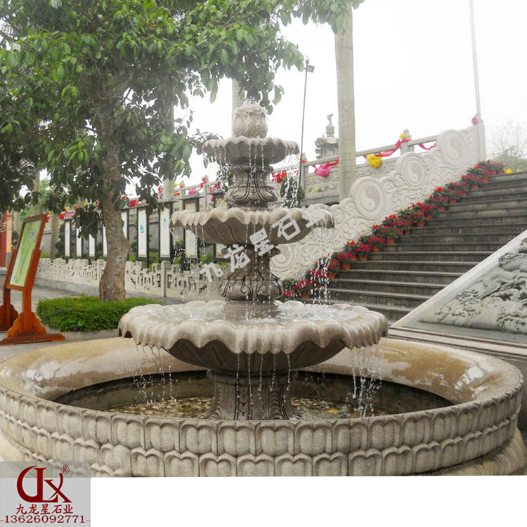 三層的景觀石雕水缽不僅具有很好的視覺沖擊力,同時(shí)與噴泉互相映襯,集合了雕塑藝術(shù)和環(huán)境美化等人文知識(shí)。在園林中的景觀石雕水缽,一般是為了造景的需要,人工建造的具有裝飾性的噴水裝置。噴泉的細(xì)小水珠同空氣分子撞擊,能產(chǎn)生大量的負(fù)氧離子。因此,噴泉有益于改善城市面貌和增進(jìn)居民身心健康。