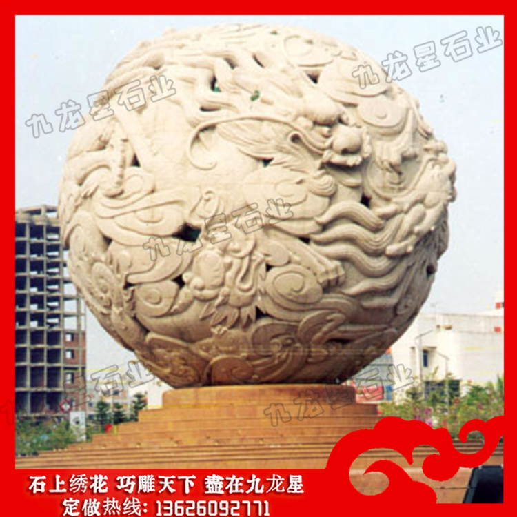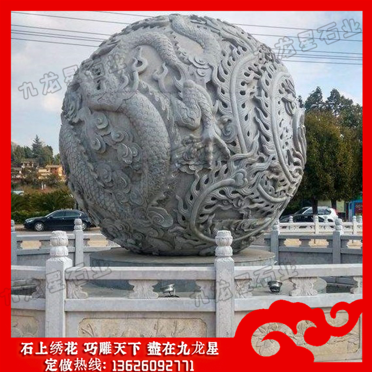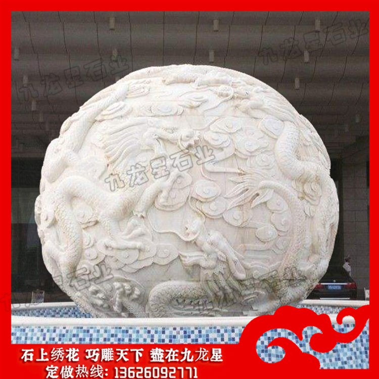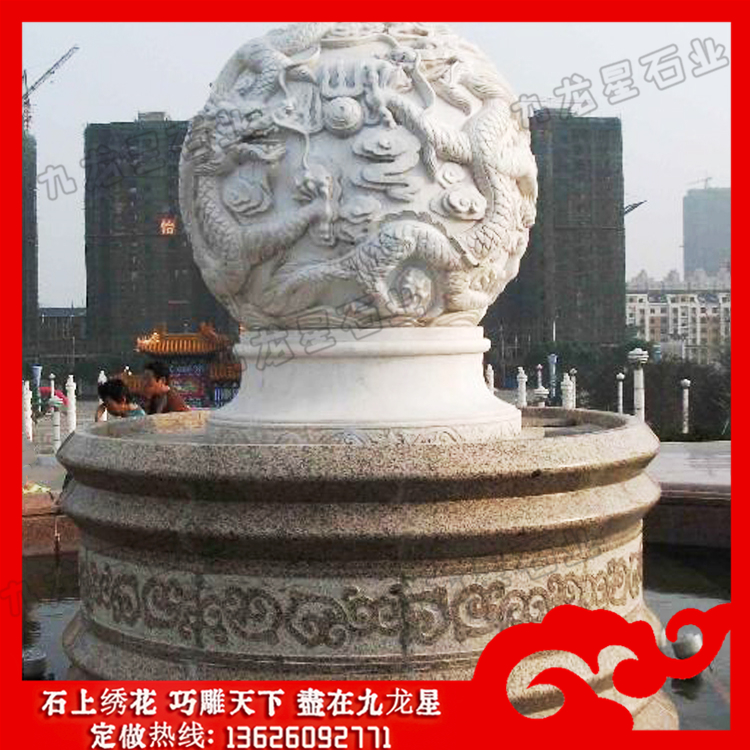 石雕龍球顧名思義就是在一個(gè)石球上雕刻滿龍浮雕,也可稱為石龍球、風(fēng)水球等。雕刻龍的石材風(fēng)水球加工的滾動工作原理為:在風(fēng)水球的底盤(柱)裝水,用水泵抽水向上噴而沖動上面的石球。風(fēng)水球轉(zhuǎn)動的身軀,代表著生命的靈動,不論單位或家中,只要有石雕龍球的轉(zhuǎn)動,代表風(fēng)生水起,財(cái)源滾滾。石雕龍球圖片的球轉(zhuǎn)水流,水為財(cái),石轉(zhuǎn)運(yùn)到,有財(cái)源滾滾,時(shí)來運(yùn)轉(zhuǎn)之意,而且其動感的效應(yīng),動靜融合,典雅怡人。