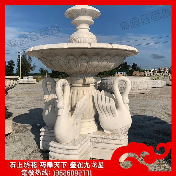 別墅歐式石雕噴泉設(shè)計(jì)是具有極高的觀賞價(jià)值的景觀雕塑。噴泉石雕采用的是天然石材一般都是用大理石和砂巖石制作加工,廠家會(huì)按照定制的要求雕刻制作一些精美的圖案隨附在水缽上,可以給人一種很好的視覺(jué)享受。 別墅歐式石雕噴泉設(shè)計(jì)的造型多樣化,有動(dòng)物石雕雕刻水缽,人物石雕雕刻水缽,是圓形、半圓形、方形、多邊形等,立面可以分單層、多層等。設(shè)計(jì)的依據(jù)是要配合應(yīng)用地點(diǎn)的環(huán)境特點(diǎn)。