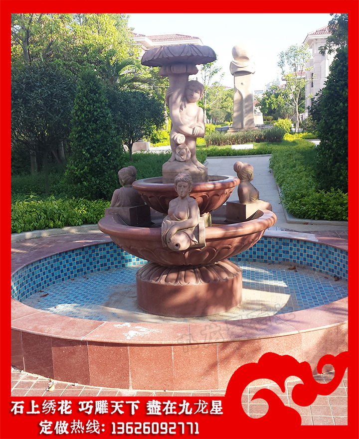 歐美石雕噴泉的樣式已經(jīng)走進(jìn)了各大城市的樓盤,私人別墅、酒店、賓館、裝飾后的小區(qū)景觀更加漂亮,環(huán)境更加宜人,大大促進(jìn)了美觀!各式景觀噴水雕塑與噴水池的景色相得益彰,使環(huán)境變得更加引人入勝。各式動物、人物石雕噴泉與噴泉主題相映襯,集合了雕塑藝術(shù)、環(huán)境美化等人文知識,是環(huán)境建筑中一道迷人的風(fēng)景。