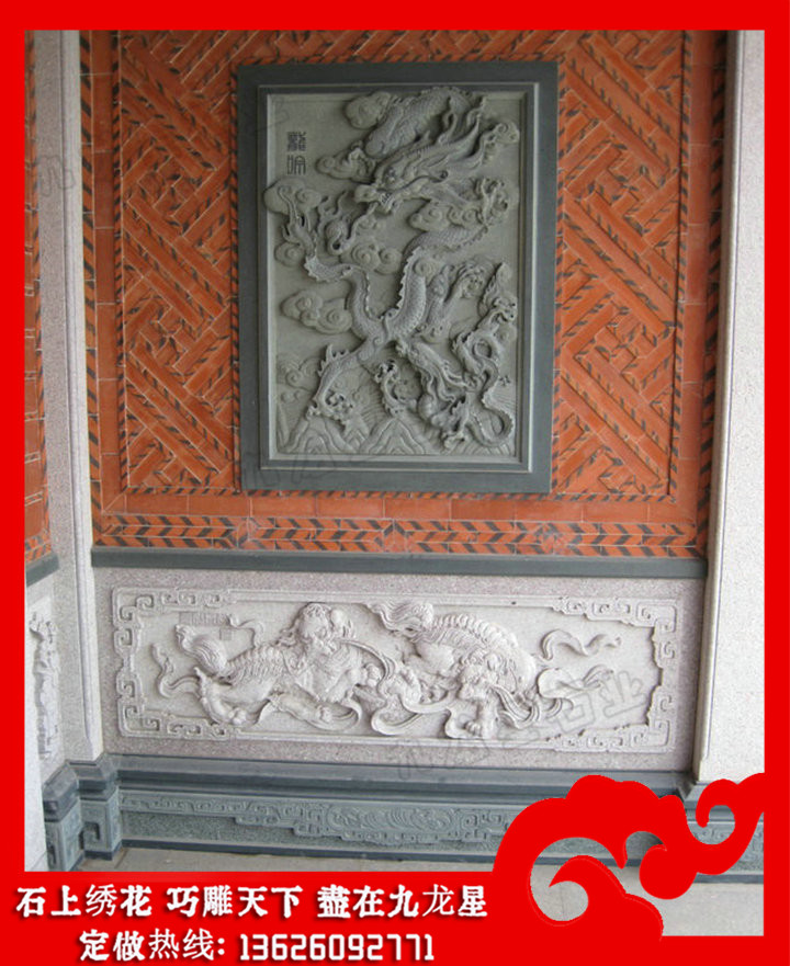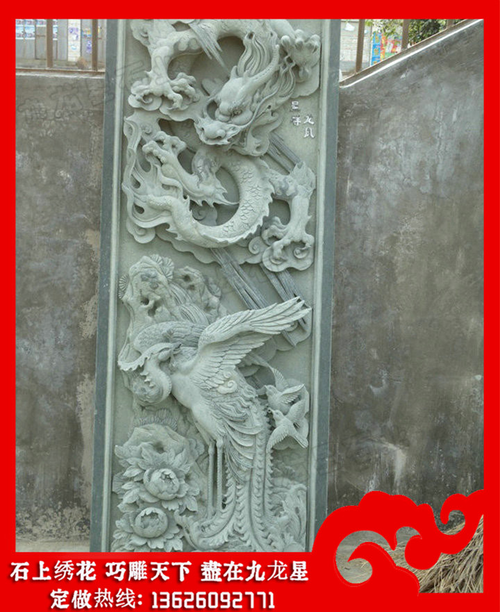 石雕龍鳳浮雕圖片大全是比較常見的一種浮雕壁畫,在中國的傳統(tǒng)吉祥圖案中,石雕龍鳳浮雕是很好看的一種。畫面上,龍、鳳各居一半。龍是升龍,張口旋身,回首望鳳;鳳是翔鳳,展翅翹尾,舉目眺龍。周圍瑞云朵朵,一派祥和之氣。龍是古人對魚、鱷、蛇、豬、馬、牛等動物,和云、雷電、虹等自然天象模糊集合而產(chǎn)生的一種神物。爬行動物和哺乳動物是龍的主要集合對象,因此,龍常常被稱為"鱗族之長"、"眾獸之君"。