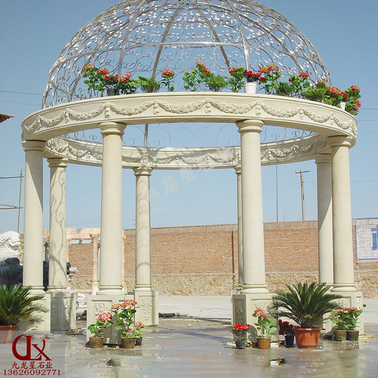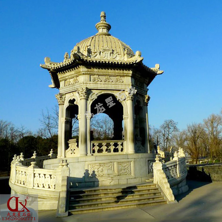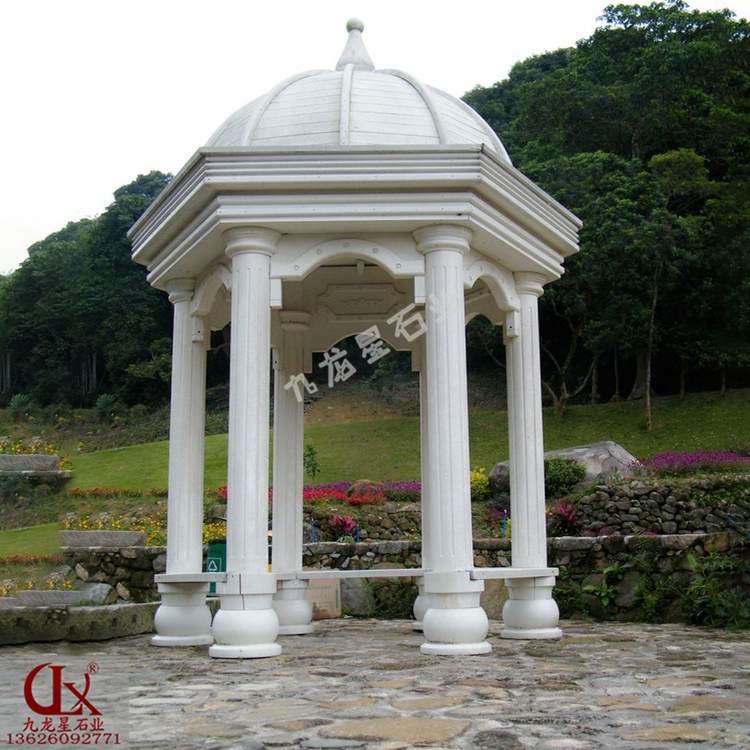 大理石圓頂亭子 小區(qū)庭院歐式石雕涼亭——九龍星石業(yè),二十年工藝。