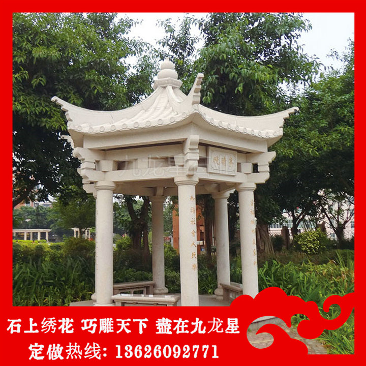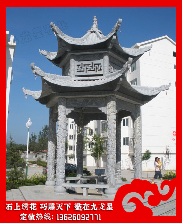 石雕亭子(石雕六角涼亭圖片 庭院石涼亭設(shè)計(jì))——九龍星石業(yè)。