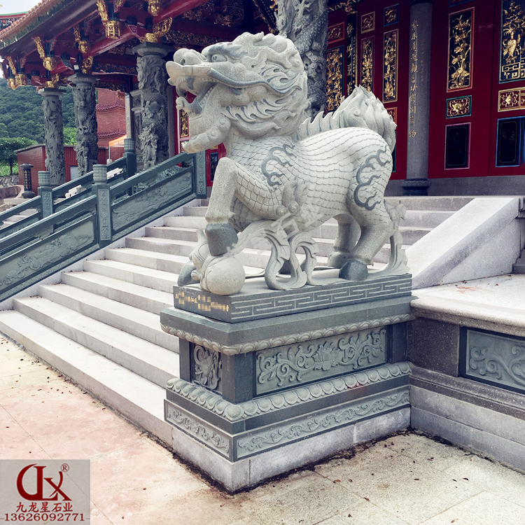 石雕麒麟是用優(yōu)質(zhì)青石、漢白玉、花崗巖、大理石等石材玉料雕刻而成的石雕麒麟。麒麟是古代的仁獸,集龍頭、鹿角、獅眼、虎背、熊腰、蛇鱗、馬蹄、豬尾于一身,乃吉祥之寶,從古到今都是公堂上的裝飾,以振官威之用,也是權(quán)貴的象征。