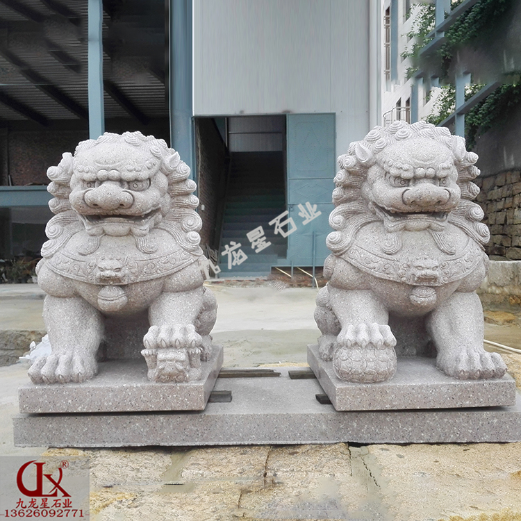 寺院門口石獅子 石雕石獅子現(xiàn)貨廠家——九龍星石業(yè)。