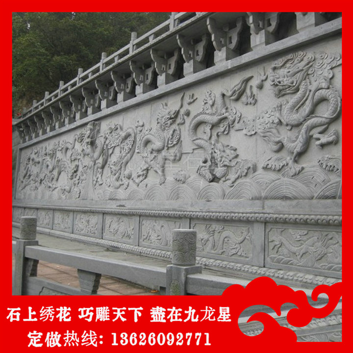 花崗巖九龍壁圖片屬于照壁的一種,適合企業(yè)、公園、廣場、寺院、道觀等地方修建,花崗巖九龍壁照壁在現(xiàn)代公共建筑空間中的運(yùn)用照壁作為一個(gè)傳統(tǒng)建筑符號(hào),在當(dāng)今仍然廣為應(yīng)用。不同的石雕照壁位置、尺度、石材色彩等就會(huì)產(chǎn)生不同的空間效果,帶給人不同的觀賞及心理感受。