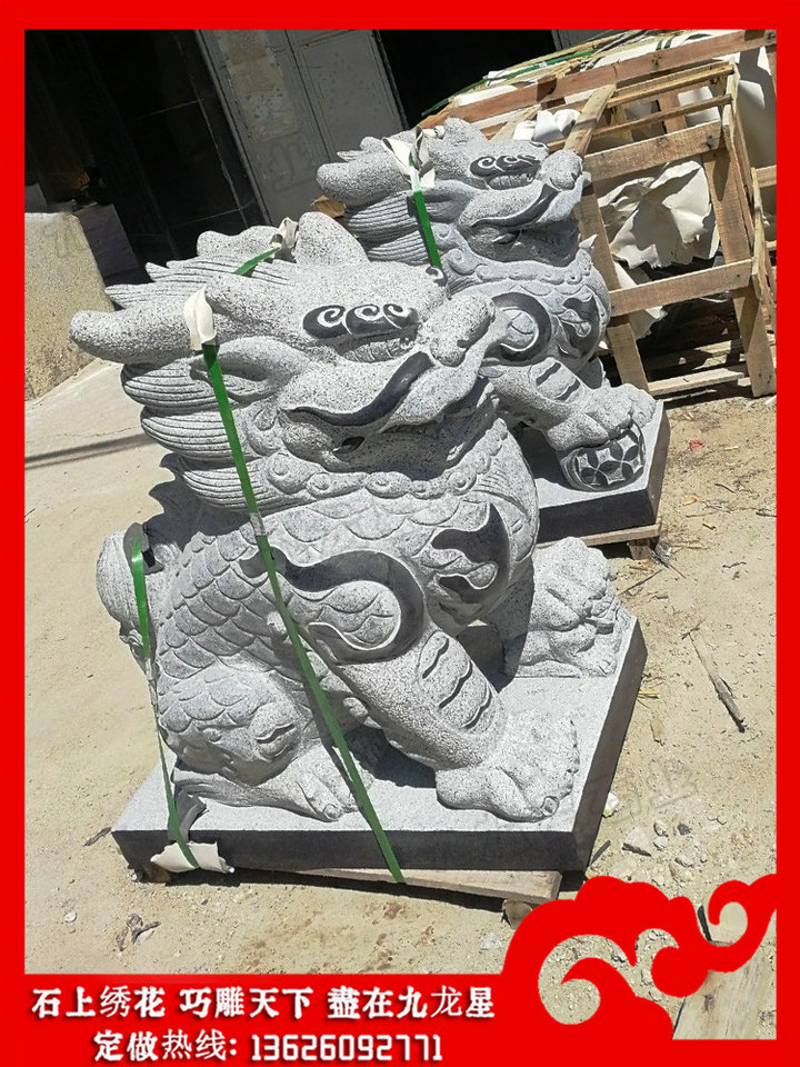 麒麟石雕(大門口石雕麒麟圖片 青石石雕麒麟擺放寓意)——九龍星石業(yè)。